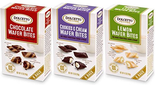 -. Title : Dolcetto Petites Wafer Bites 3 Flavor Variety Bundle: (1) Dolcetto Chocolate Wafer Bites, (1) Dolcetto Lemon Wafer Bites, and (1) Dolcetto Cookies & Cream Wafer Bites, 4.2 Oz. Ea. (3 Boxes Total)