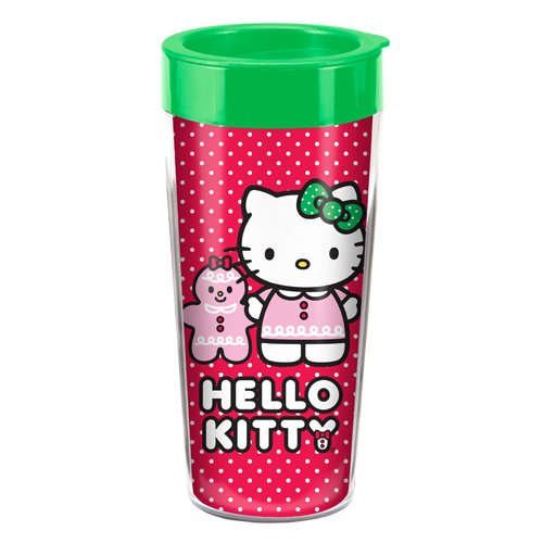 Vandor 18451 Hello Kitty Holiday 16 oz Plastic Travel Mug, Red, Green, and Whtite