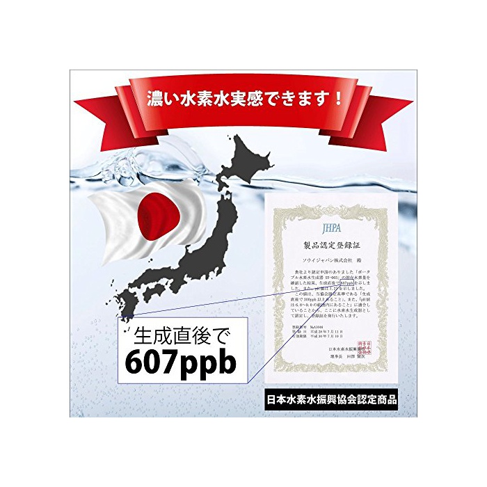일본 수소 수 진흥 협회 인정 상품,생성직다음에607ppb농도 수소 수 를 할 수 있습니다.