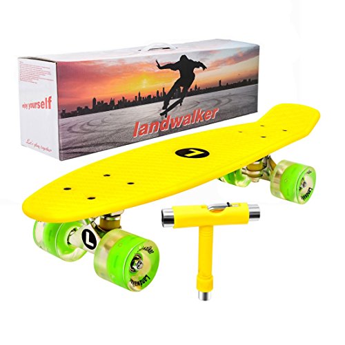 -. Brand : Landwalker -. Feature : Performance: ABEC-7 Bearings; 59mm GLOWING PU wheels; Lightweight aluminum trucks. / Landwalker Technology - Landwalker is composed of sophisticated equipment and well-trained workers, brilliant service team and service attitude. Every board is committed to provide customers a good experience. / Unique Experience- Landwalker¡¯s 22" Light Up Skateboard bring you into a unique skateboarding experience at night, take your board out and admire its beauty and rich colors. / Commuting has never been so easy - Take this board on the subway, plane, train, and bus with ease. / T-TOOL included- All Landwalker Boards come completely with a T-tool(the color is the same as the deck of skateboard) which is a $6 value. -. IsAutographed : 0 -. IsMemorabilia : 0 -. Label : Landwalker -. Manufacturer : Landwalker -. MPN : 1 -. PartNumber : 1 -. ProductGroup : Sports -. ProductTypeName : OUTDOOR_RECREATION_PRODUCT -. Publisher : Landwalker -. Studio : Landwalker -. Title : Landwalker 22" Light Up Skateboard with Colorful LED Light Up Wheels-Ready to Ride