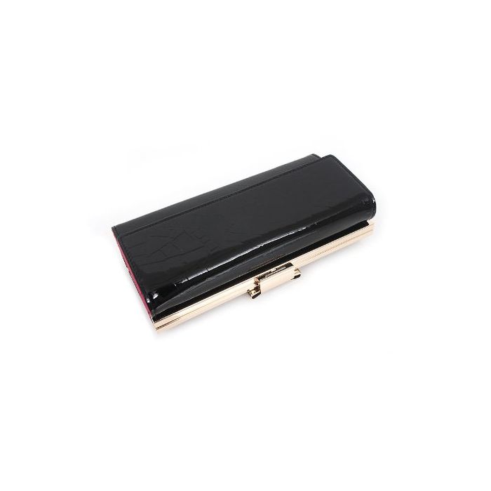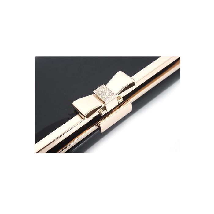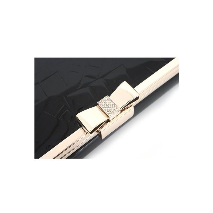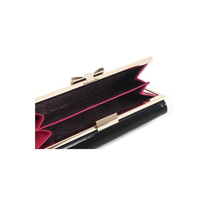 OMNIA 옴니《아》 리본 체격 3단 접이 장지갑 가죽 지갑 레이디스 omnia crystal (블랙)