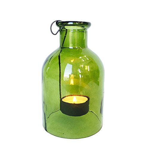 - Create Cozy Vibes and welcome your guests with our Rustic Dark Green Glass Tea Light Holder. Crafted of farmhouse style green glass, traditionally used to protect delicate liquids such as wine or olive oil, now protects the flame of a candle and whispers vintage country charm.