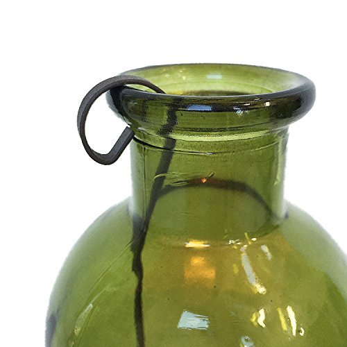 The Rustic Green Glass Tea Light Holder, Vintage Bottle Style, with Metal Tea Light Holder Included, Approx. 6 High By Whole House Worlds