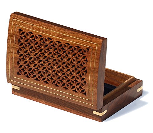 -. Title : SouvNear Jewelry Box/Decorative Box / Keepsake Box / Trinket Box Wood Carving - Handmade Wooden Brown Box