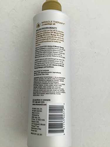 -. Feature : Infusium23 Miracle Therapy Set with Moringa Oil / Step 1-Miracle Therapy Shampoo with moringa oil 12 floz / Step 2-Miracle Therapy Conditioner with mringa oil 12 floz / Step 3-Miacle Therapy Leave-in Treatment with moringa oil / Products are not tested on animals. Products made with hypoallergenic ingredients