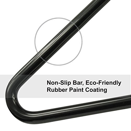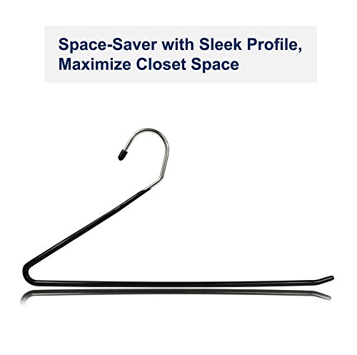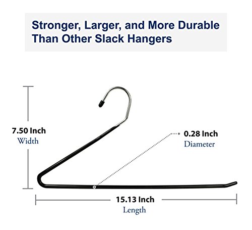 -. Feature : "NEW YEAR'S SPECIAL" -- PREMIUM QUALITY - Stronger than standard Pant Hangers. Top Quality Material: High Grade Stainless Steel and Eco-Friendly black rubber coating. / HEAVY DUTY - Extra durable with 0.5 cm diameter design. Superior size of 15.13 inch length and 7.5 inch height, fitting most pant sizes. No deformation with multiple pants on a single hanger. / SPACE-SAVER - Maximize storage room in closets. Hanger dimension: 15.13"L x 7.50"W x 0.2"D (38.1x19.1x0.5cm) / SMOOTH SURFACE AND FINISH - This Open-ended Hanger boasts a smooth finish while keeping creases from leaving on your pants, slacks, trousers or jeans. Also suitable for hanging delicate clothing like scarves, ties or towels. No-slip bar for pants hangers. Fits standard closet rails. / CONVENIENT OPEN-ENDED DESIGN - Easily get pants out of the closet in a hurry without even having to remove the hangers