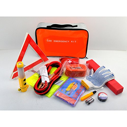 -. Feature : PMaterial: 600D. 12Pcs Portable Emergency Roadside Kit with Zippered Carrying Case: / 1, Car battery Cables. 2, Raincoat, 3.Reflective Vests, 4.Medical kits, 5 Insulating tape 6.Dual screwdriver 7. Working rope, 8. Work Gloves 9. Folding Triangle Warning Sign10.5 Battery 11. Four Emergency Hammer 12. One Canvas Bag / Excellent for Roadside and Unexpected Emergencies / Medical kits including:1, 2psc alcohol disinfection tablets 2,1pcs self-adhesive rubberized glue 3,1pcs elastic bandage 4.10Pcs Bandage 5. 2Pcs nonwoven sheet. / provides a unique combination of first aid and medical emergency preparedness supplies, all 12 pieces are manufactured in an FDA and CE approved facility.