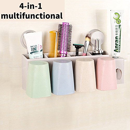 - ✔ Multifunction: It is suitable for household use and can hold eight toothbrushes and four cups. Four separate Storage sapce, easy to separate personal belongings, take more convenient.There's also the squeeze toothpaste, which doesn't cause waste!