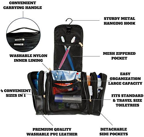 - ★ STYLISH & CONVERTIBLE 4-IN-1 TOILETRY BAG: Your new toiletry bag easily converts from a large toiletry bag to a small compact toiletry bag making it perfect for any length of trip. The side pockets are detachable so you can go small, medium or large depending on your travel plans!