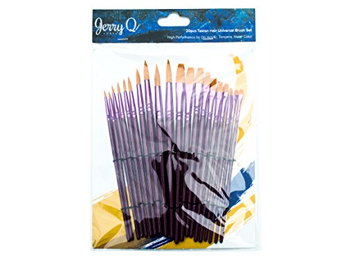 Jerry Q Art 20 pcs Golden Taklon Universal Brush Set for Watercolor, Acrylic, Oil, Tempera. Short Wooden Handles JQ202