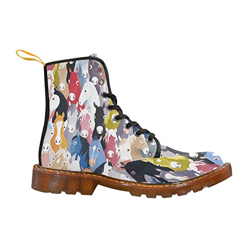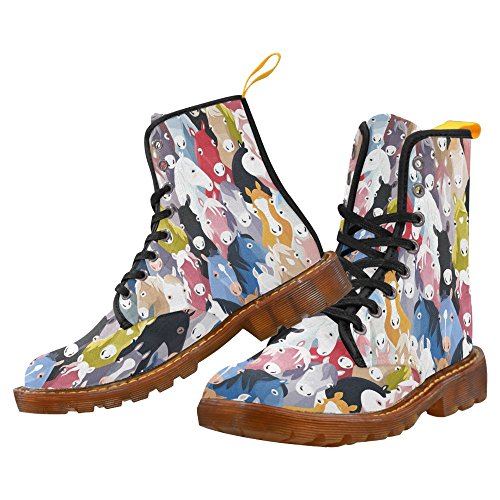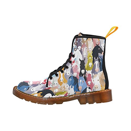 (D-Story)/Women's/Boots/DIRECT FROM USA/D-Story Shoes Seamless Pattern With Colourful Horse Lace Up Martin Boots For Women