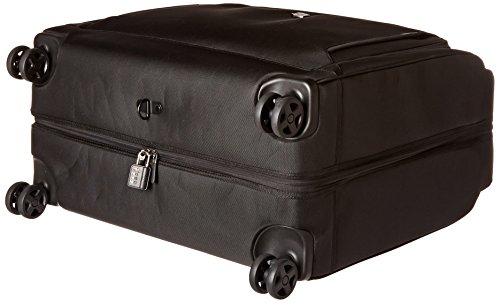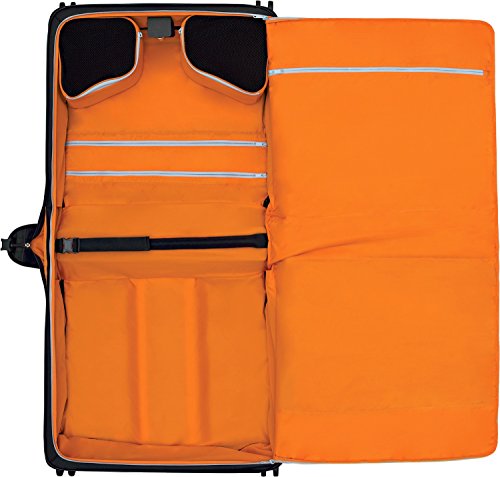 -. Feature : Dual-trolley handle system allows for superior control and dual-caster wheels deliver a smooth, stable, quiet roll and provide 360 degree movement with zero weight-in-hand / Exterior features two large front zippered pockets ideal for storing accessories / Interior features a tricot-lined tie pocket, organizational pockets, two removable mesh storage cubes and a detachable J-hook for hanging while the hanger clamp secures garments and foam bolster compression strap helps minimize wrinkles / 14.3 pounds, 7028 cubic inches / 24.5 x 22.6 x 12.75