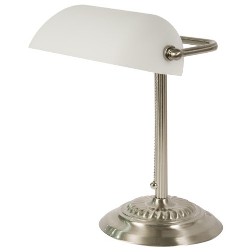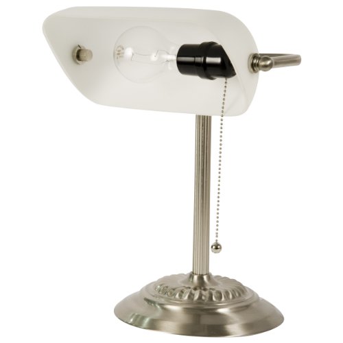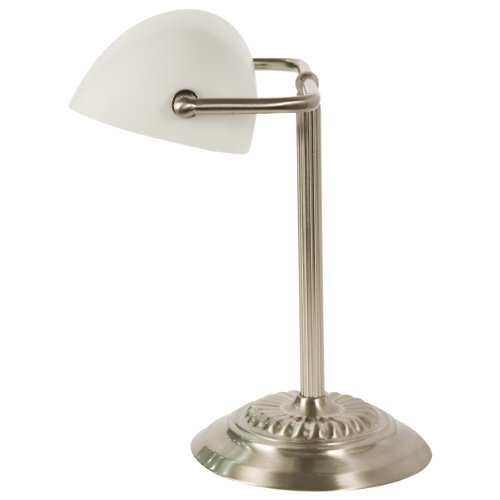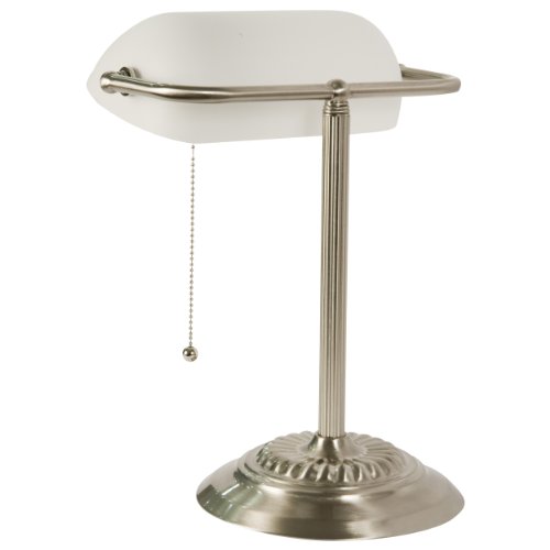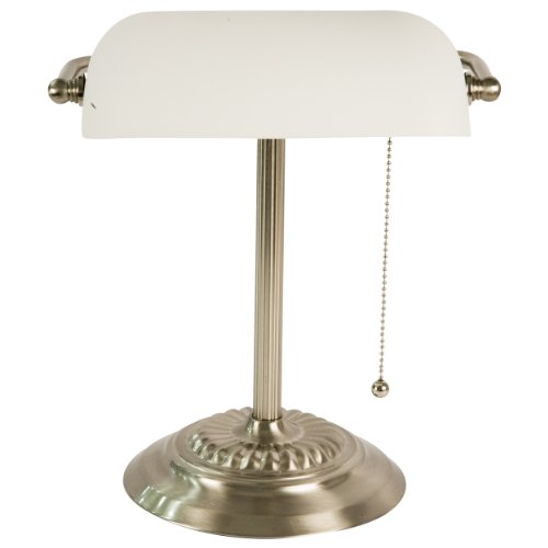 - Title : Banker's Lamp with White Glass Shade (Brushed Nickel Finish)