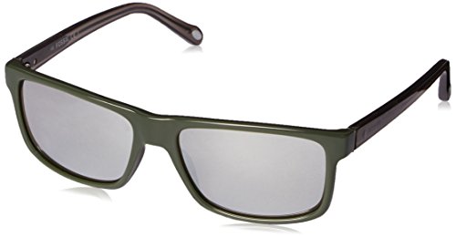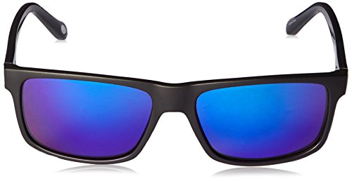 Fossil FOS3043S Rectangular Sunglasses, Matte Black & Gray Purple Mirror, 57 mm