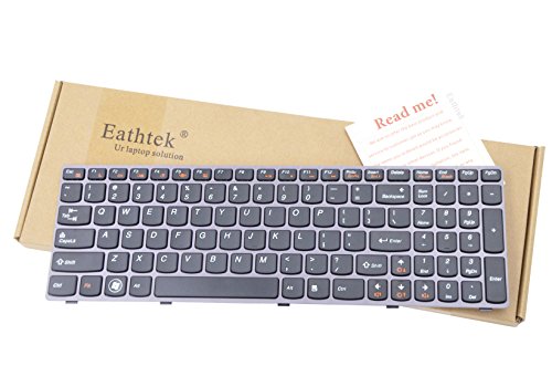 Eathtek Replacement Keyboard with Grey Frame for IBM Lenovo Z570 Z575 B570 B570A B575 V570 B580 Y570 NSK-B5CSW 25-011847 9Z.N5SSW.C01 series Black US Layout (Note:3 screw holes on the back)