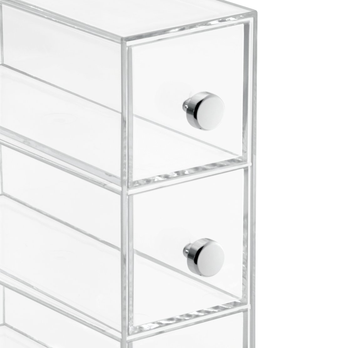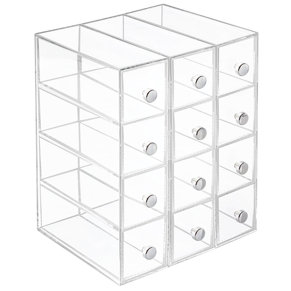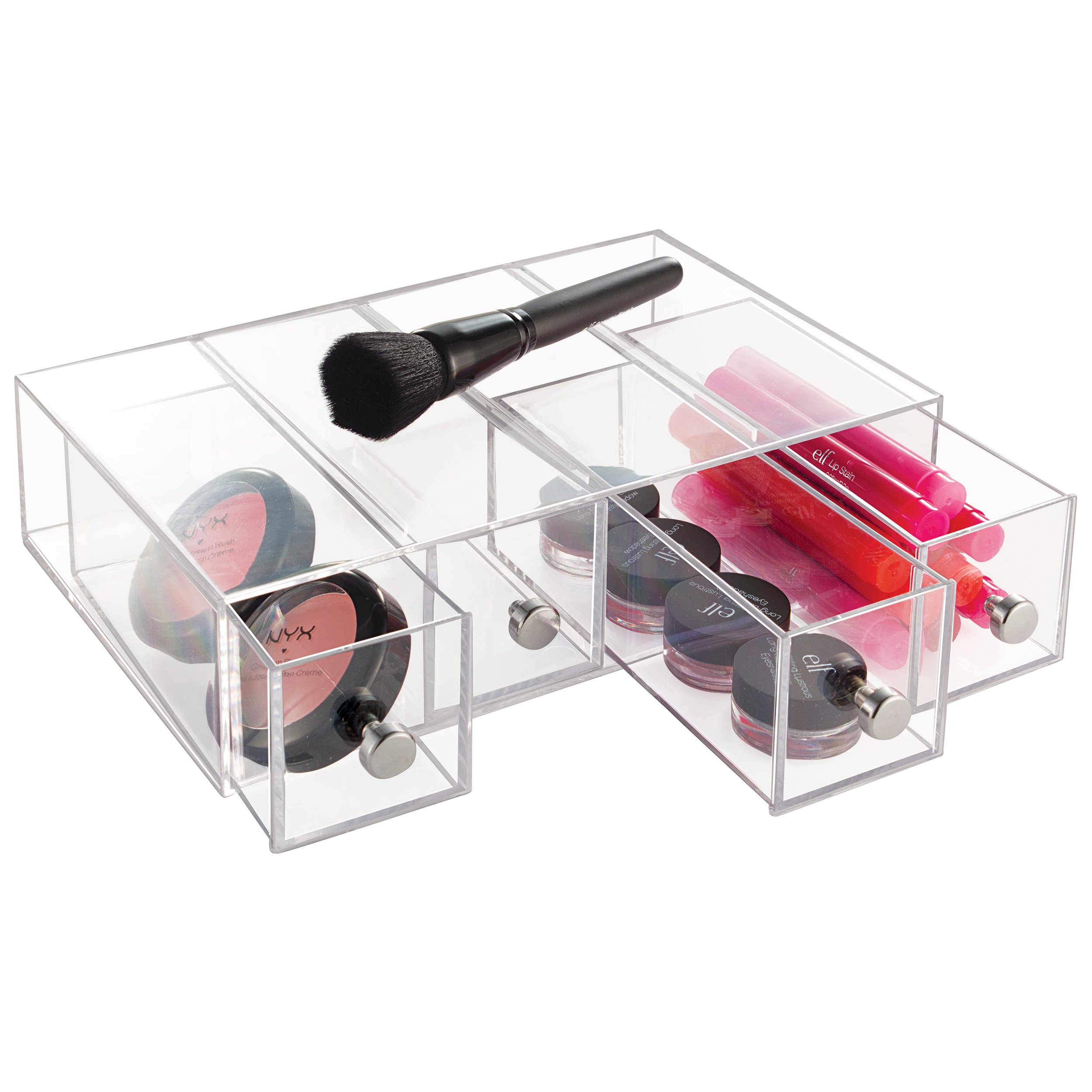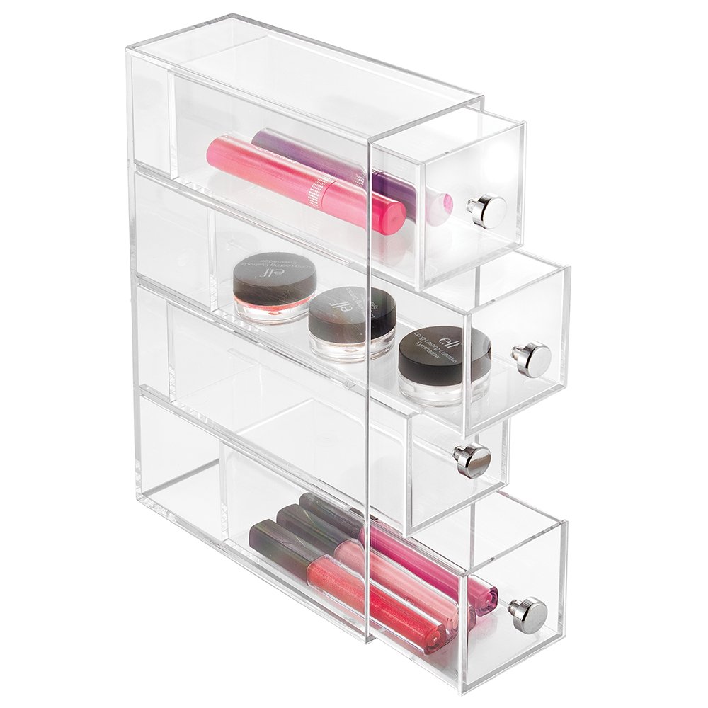 InterDesign's vertical and sideways towers are excellent items that can be stored easily with make-up and accessories.