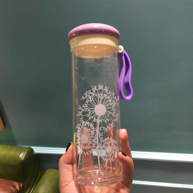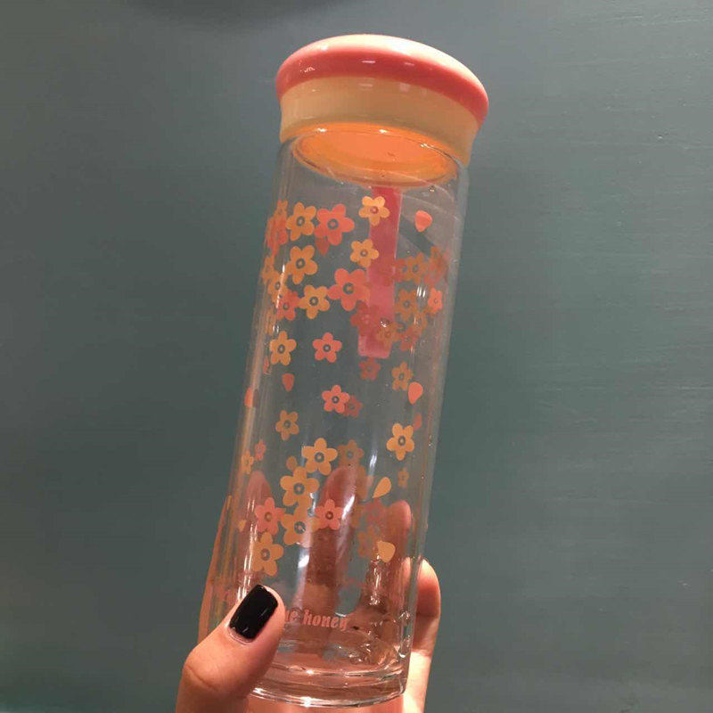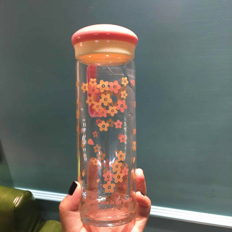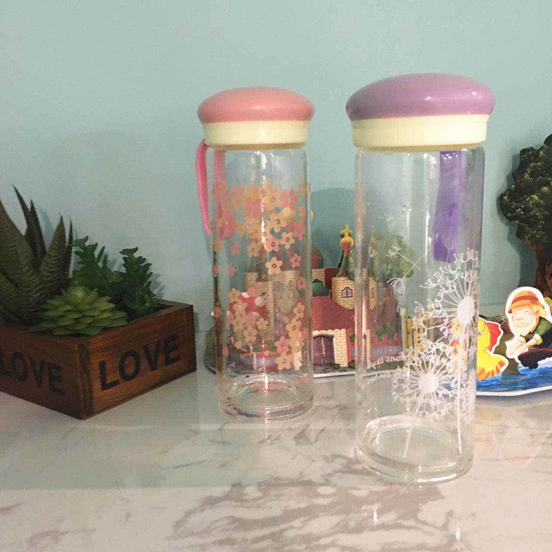 日式玻璃杯 水杯便携杯子 透明学生带盖创意车载水瓶运动男女茶杯
