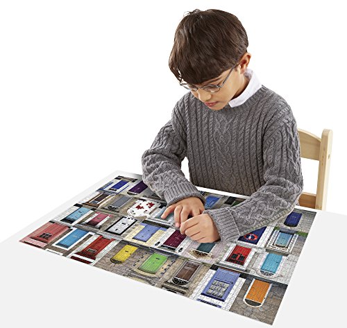 -. Feature : Durable cardboard jigsaw puzzle featuring dozens of colorful doors / 1000 pieces; every piece is uniquely shaped / Higher piece count presents a bigger challenge / Measures 29 x 23 inches (74 x 48 cm) when assembled / Promotes hand-eye coordination, fine motor skills, and problem-solving skills
