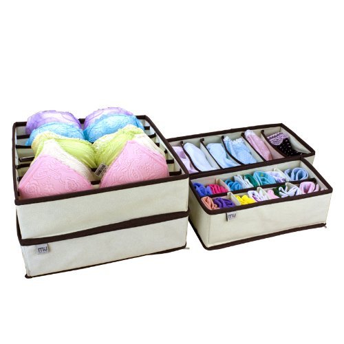-. Title : ANKKO Durable Foldable Drawer Closet Organizers 4pcs Bra Underwear Storage Boxes