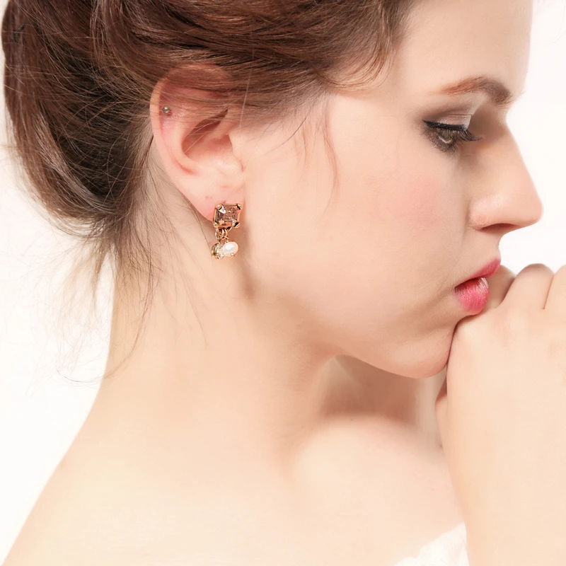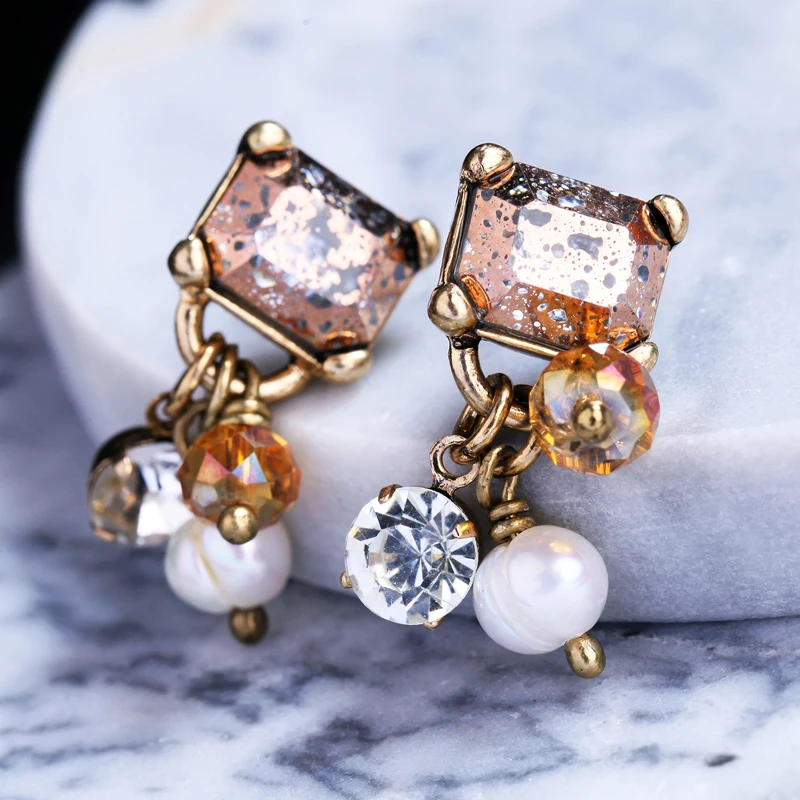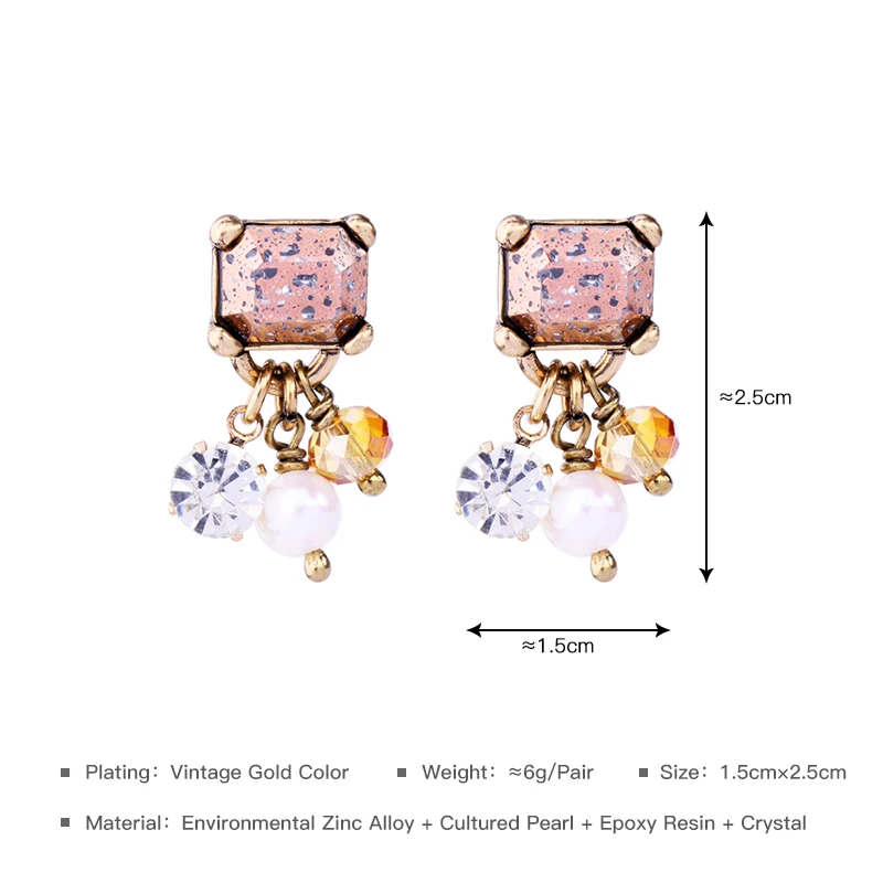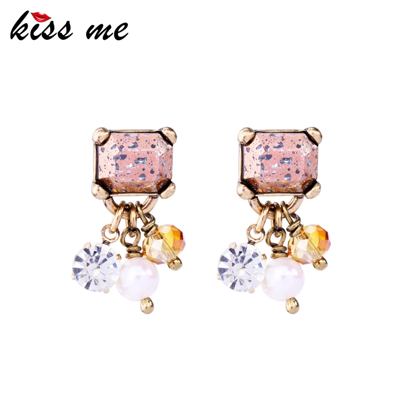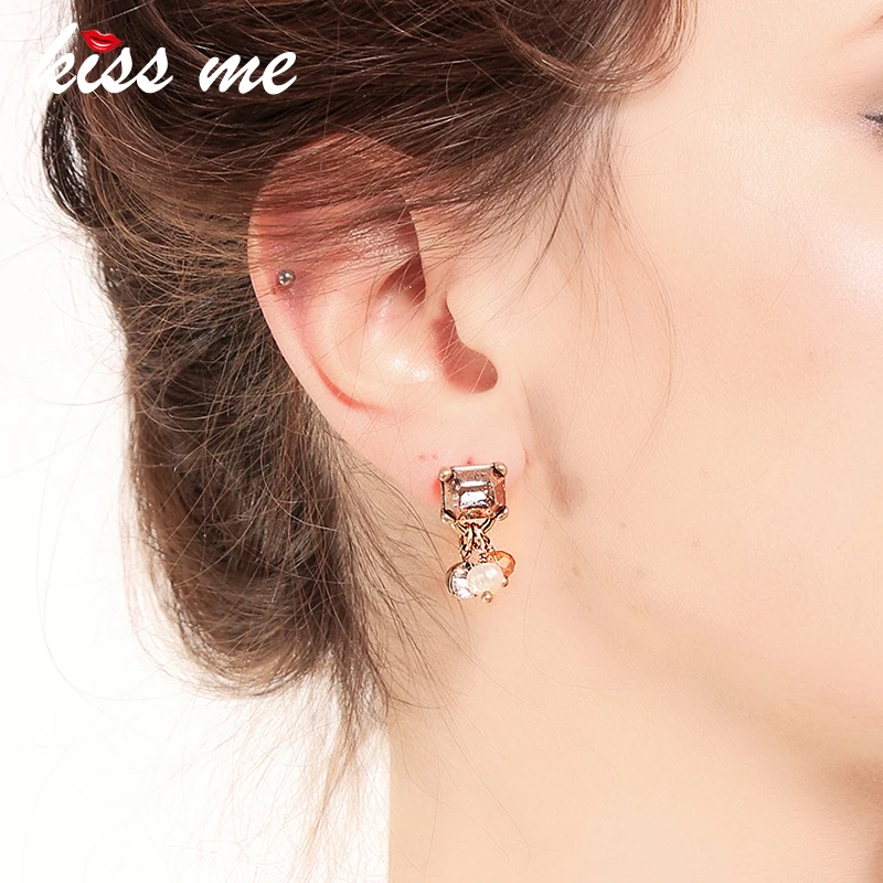 Production name ::KISS ME Crystal Imitation Pearl Geometric Small Drop Earrings
