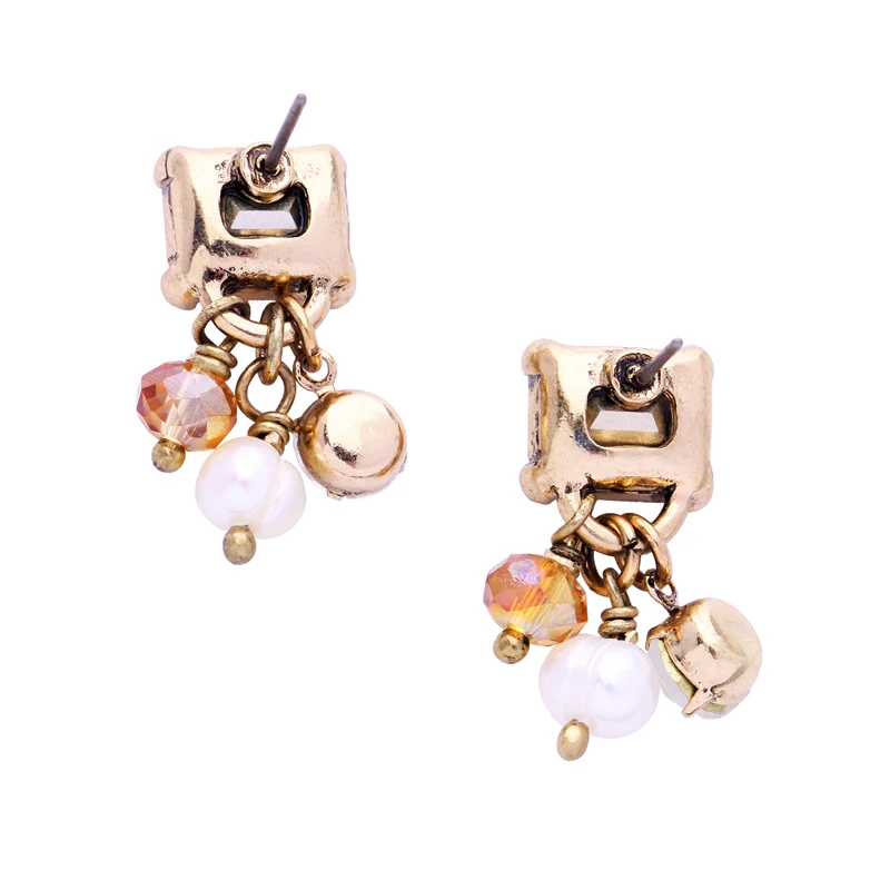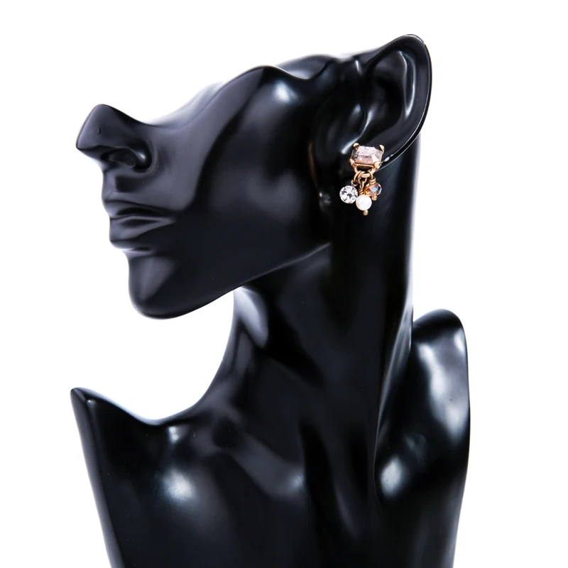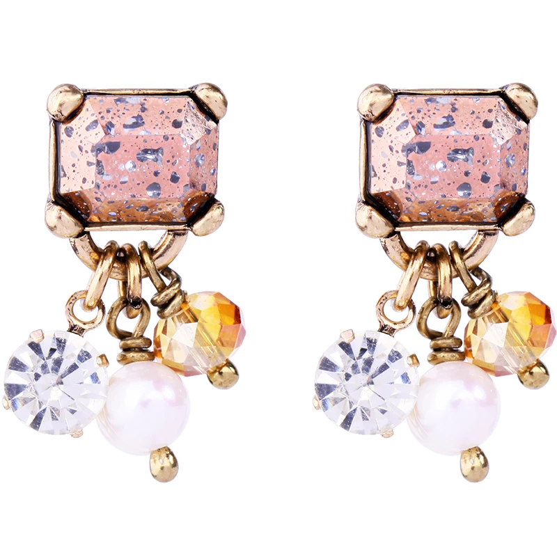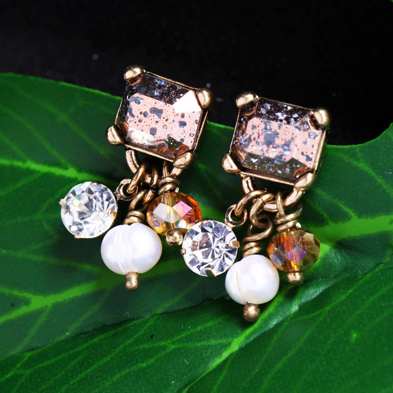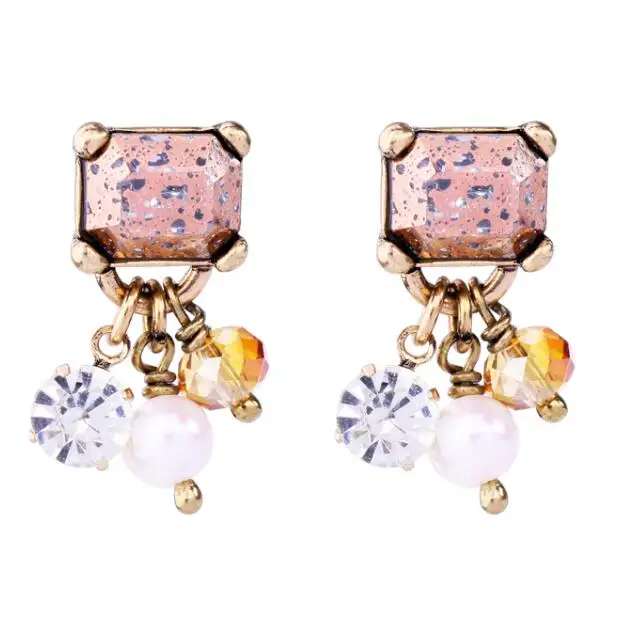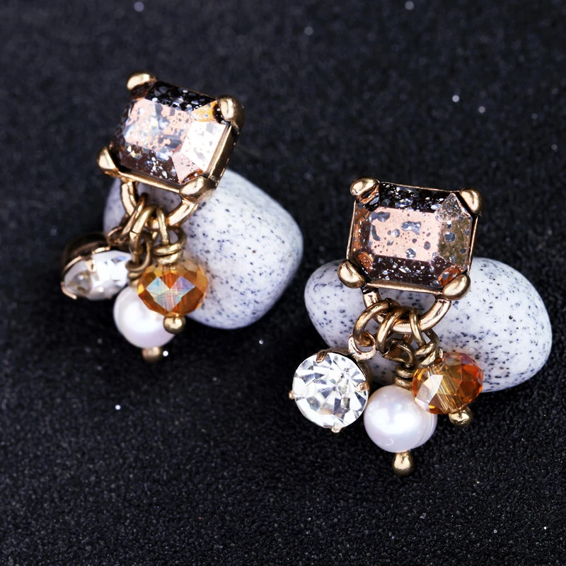 Production name ::KISS ME Crystal Imitation Pearl Geometric Small Drop Earrings