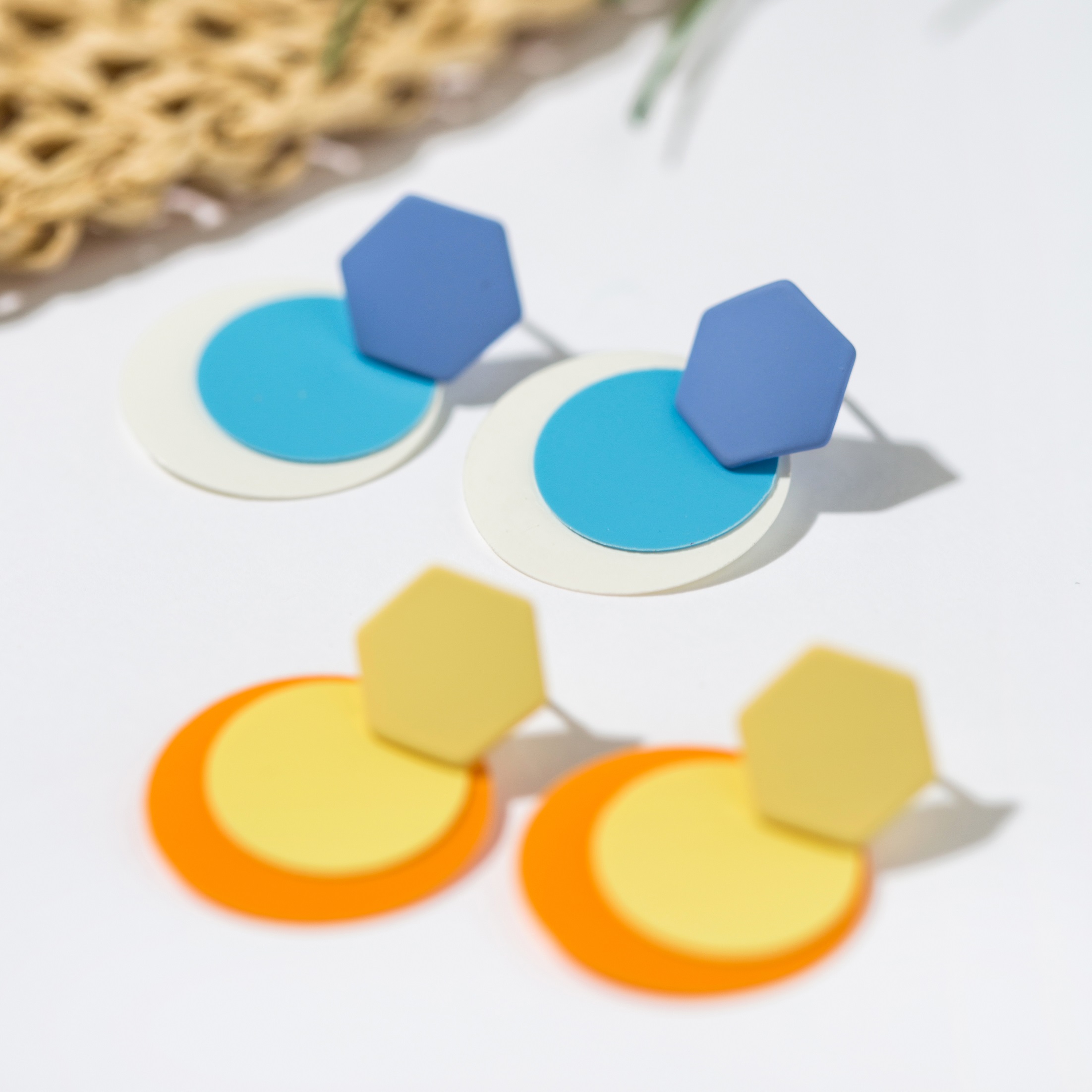 컬러 육각 동그라미 귀걸이
