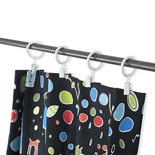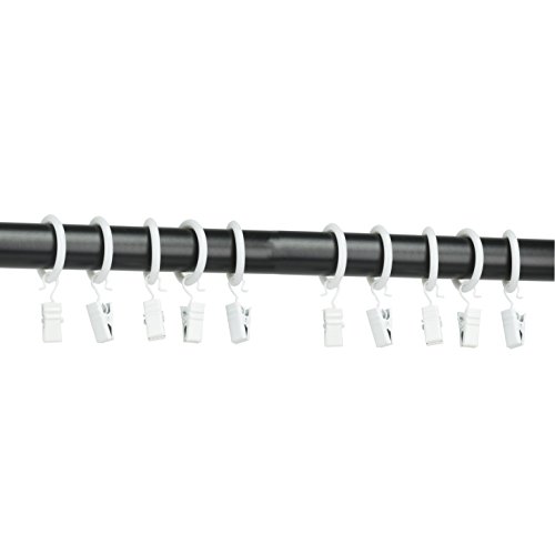 KAO Mart 10 Piece Set Decorative Small Curtain Rings, 1” Interior Diameter, Stylish Black Finish with Removable Clips (White)