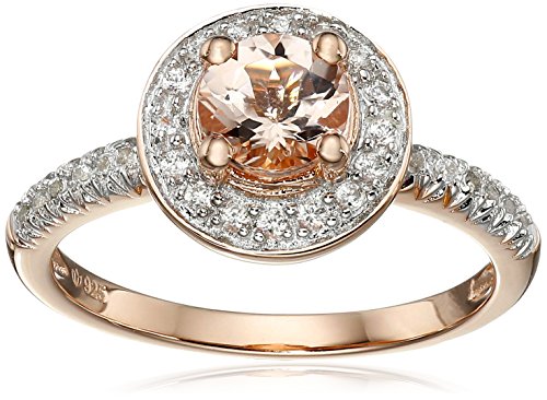 -. Title : Rose Gold-Plated Silver Morganite and Natural White Zircon Halo Ring, Size 7