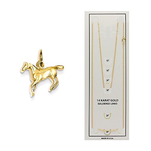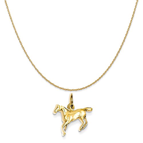 14k Yellow Gold Polished Horse Charm on a 14K Yellow Gold Carded Rope Chain Necklace, 18". The Pendant on this Necklace is on an 18 inch Rope Style 14k Yellow Gold Chain and is Packaged in a Satin Jewelry Pouch.Feature