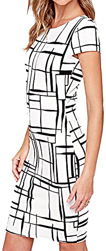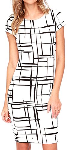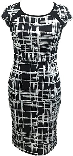 -. Binding : Apparel -. Brand : LunaJany -. Department : womens -. Feature : 95% Polyester/5% Cotton / Cap sleeves,sheath silhouette. / A stretch knit forms a curvy bodycon look with black lines "drawn" throughout, and short cap sleeves. Rounded neckline. Hidden back zipper / The size on the label may larger than your choice. Please understand that this is not means you get a wrong item. Since the big difference of size standard between Euro-market and American market, we choose one or two size up clothes for you. / imported -. ProductGroup : Apparel -. ProductTypeName : DRESS -. Title : LUNAJANY Women's Summer Casual Black Striped P.R.Int Wear to Work Sheath Dress