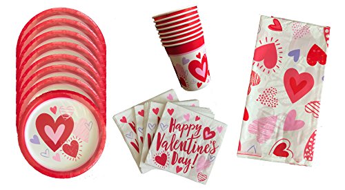 Valentines Day Party Supplies Set for 8 Guests Including: Table Cover, Plates, Napkins & Cups