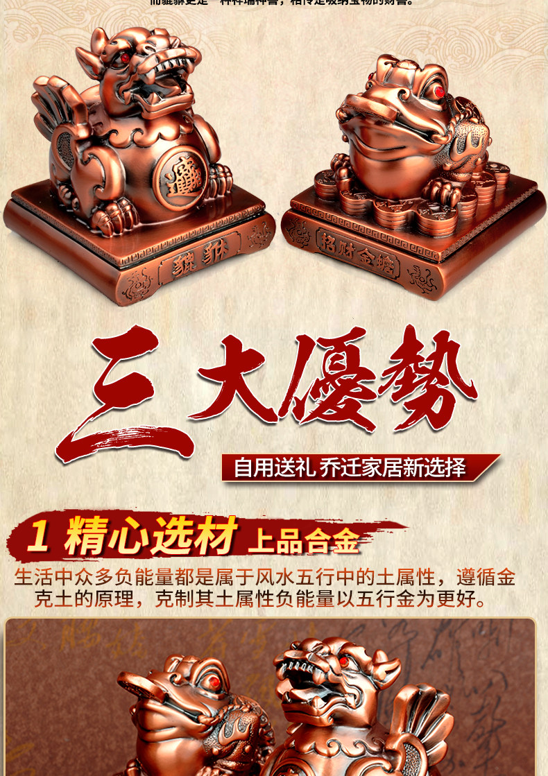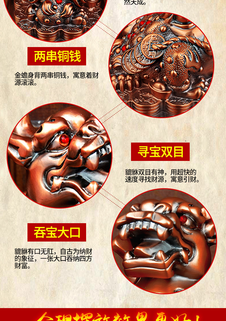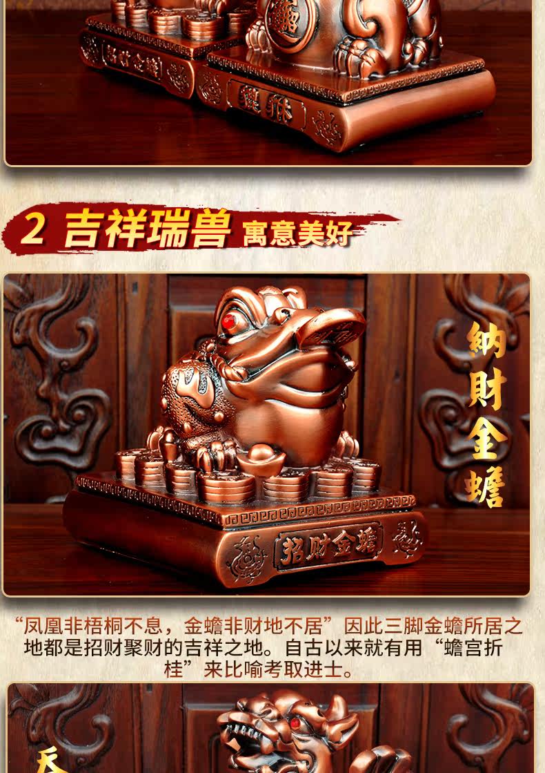 祥云阁 古铜金蟾家居摆件貔貅摆设金蟾蜍工艺品摆件高端