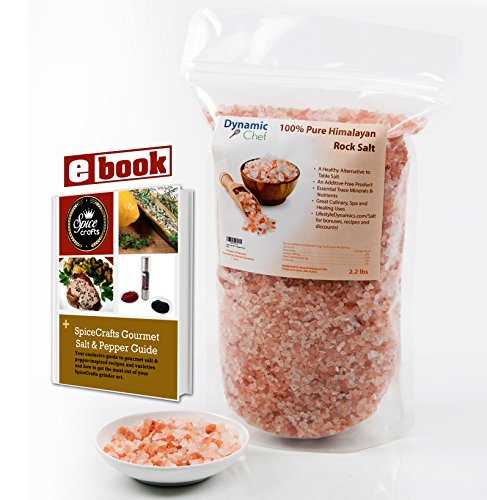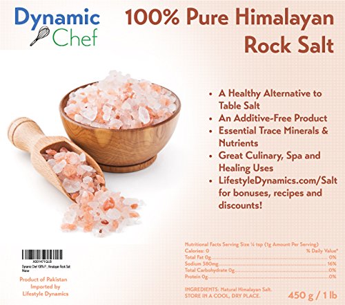 Pure Himalayan Salt by Dynamic Chef, Pink Rock Salt, Essential Trace Minerals, Plus RECIPE EBOOK, 1 lb, 450 g bag