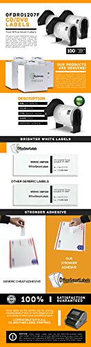 OfficeSmartLabels Brother Labels Compatible DK1207 2.2 in diameter (58.2 mm diameter) CD/DVD White Film Labels (100 Labels) - With Permanent Cartridge (Non-Detachable) (Full Set) (1 Pack)- BPA FREE