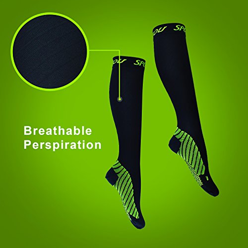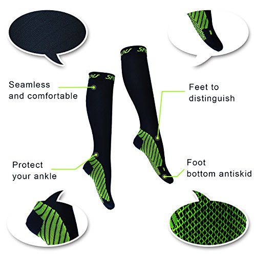 ★ FEEL THE DIFFERENCE - Thicken the sole of a stocking design, breathable and durable compression fabric. Prevent cramps. Compression socks for running and travel. The compression and support is perfectly located on Heel, Foot & Calves, and the toe area won"t squeeze your aching toe joints.