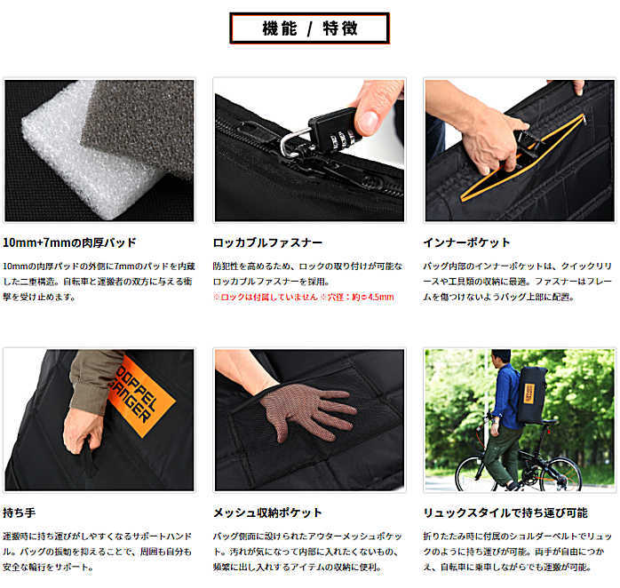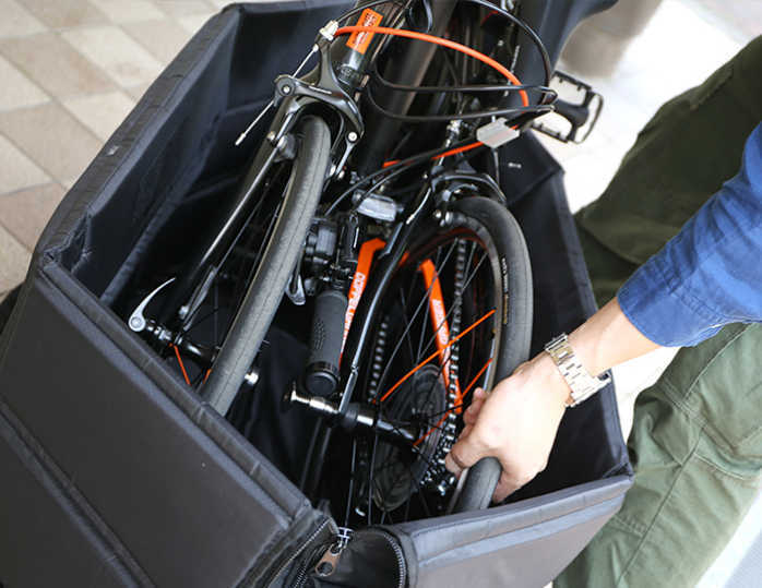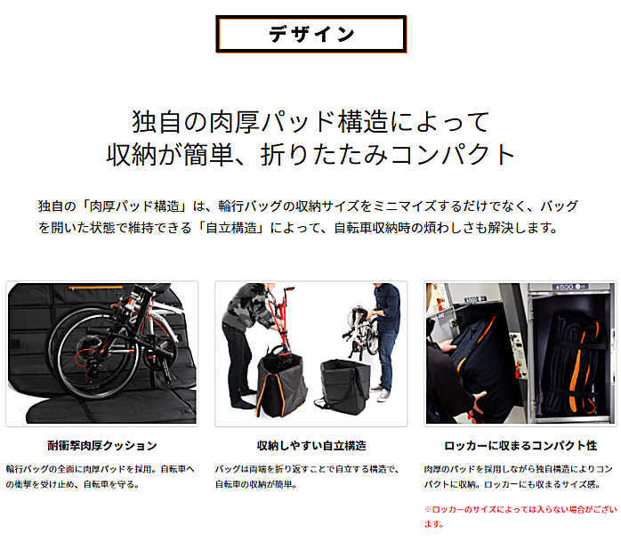 そんな自転車のプロテクションを最優先に考えたのが「耐衝撃輪行キャリングバッグ」。軽量コンパクトな輪行袋では得られない耐衝撃性を、肉厚パッドをバッグ全面に内蔵することで実現した自転車に優しい輪行キャリングバッグです。