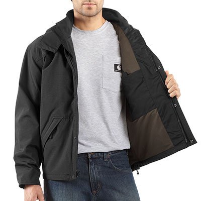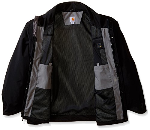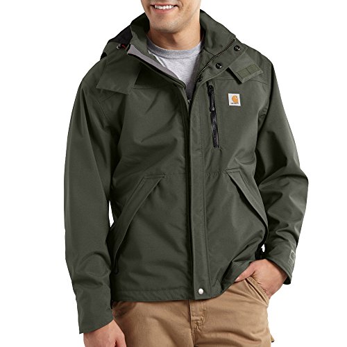 Studio : Carhartt Sportswear - Mens Publisher : Carhartt Sportswear - Mens Binding : Apparel Product Description Carhartt's waterproof breathable jacket is a shorter version of carhartt's waterproof breathable coat and is made of durable nylon with a special water-repellent finish, its breathable membrane allows body heat to leave the garment even as it keeps rain and moisture out, the interior body lining is a 100 percent polyester mesh, with the sleeves and hood lined in nylon, the constructed three-piece hood features an adjustable draw cord and is removable, the hem is finished with an elastic draw cord to keep out wind and cold 0
