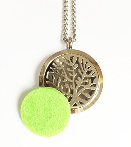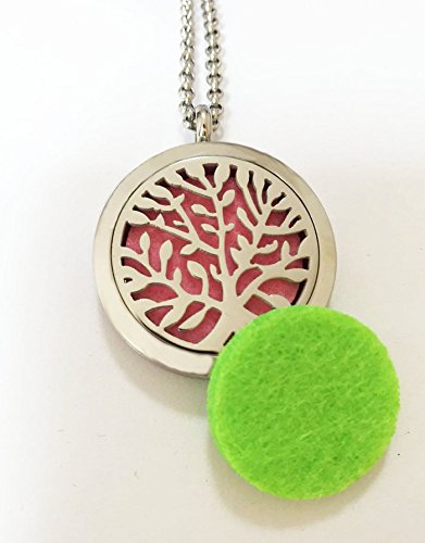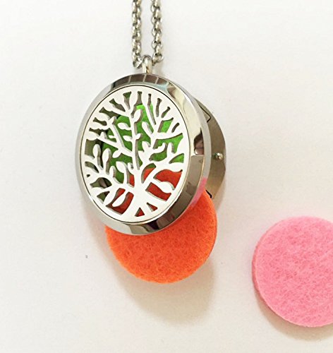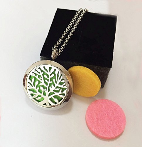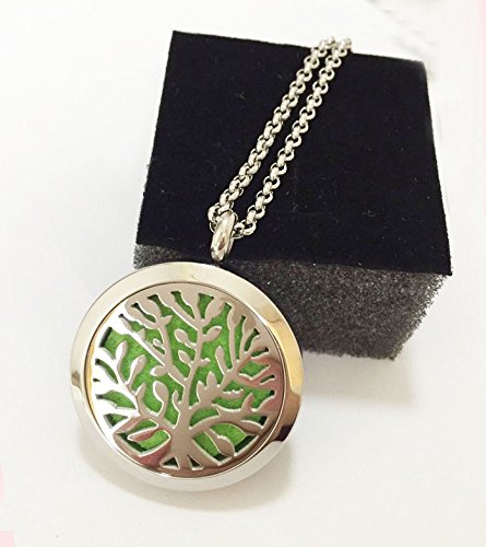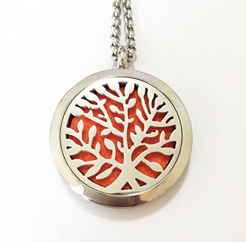 Clebsch Hypoallegenic Surgical Stainless Steel Aromatherapy Essential Oil Diffuser Necklace Pendant Locket Jewelry Gift Set on 24 Inch Chain(Tree)