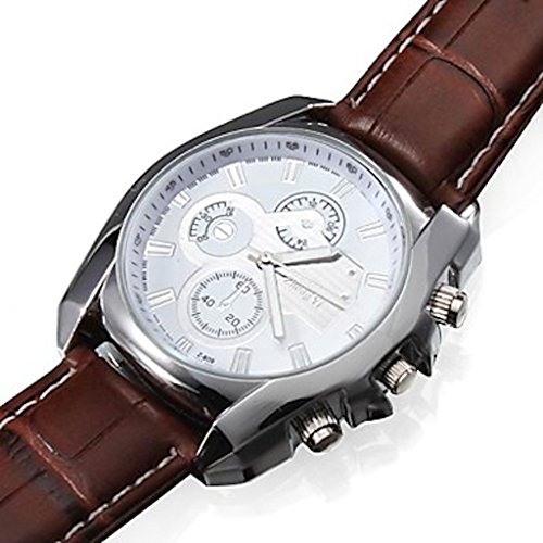 -. Feature : Gender: Men's / Movement: Quartz / Type: Wrist Watch, Fashion Watch, Casual Watch / Feature: Analog / Note: The small sub-dials on the watch face are for decoration only