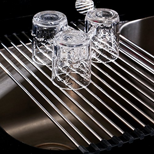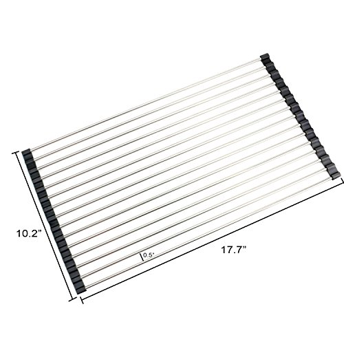 THETIS Homes Over the Sink Multipurpose Roll-Up Dish Drying Rack - 17.7"L x 10.2"W X 0.5"H, Stainless Steel