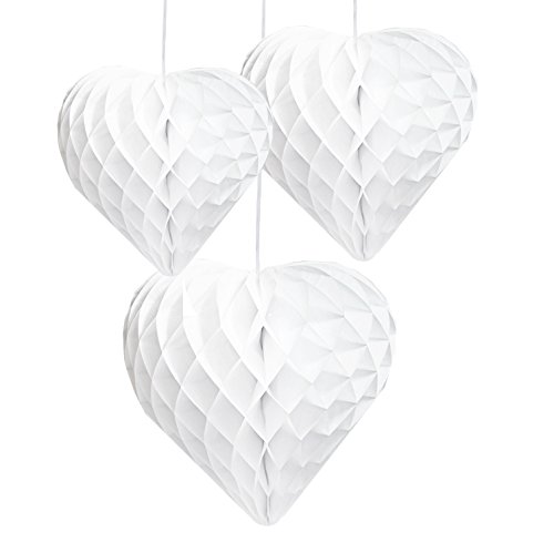 Talking Tables Decadent Decorations White Mix Size Honeycomb Hearts (3 Pack), Multicolor