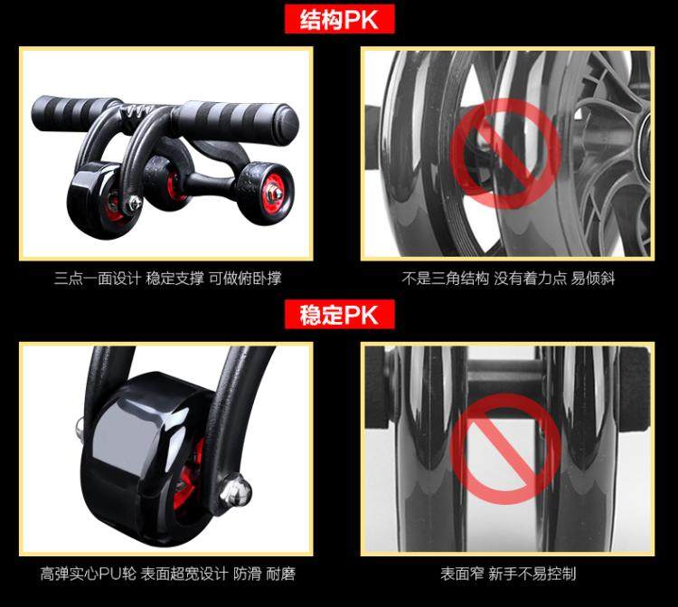 健腹轮腹肌轮三轮家用稳定锻炼运动滚轮轴承静音巨轮健身器材