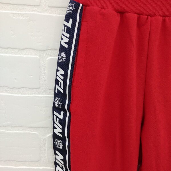 양쪽에 로고테잎과 뒷판 포켓에 NFL 엠블럼 나염으로 포인트를 준 트레이닝 팬츠, 약기모가 있으며, T07과 세트 코디 가능.