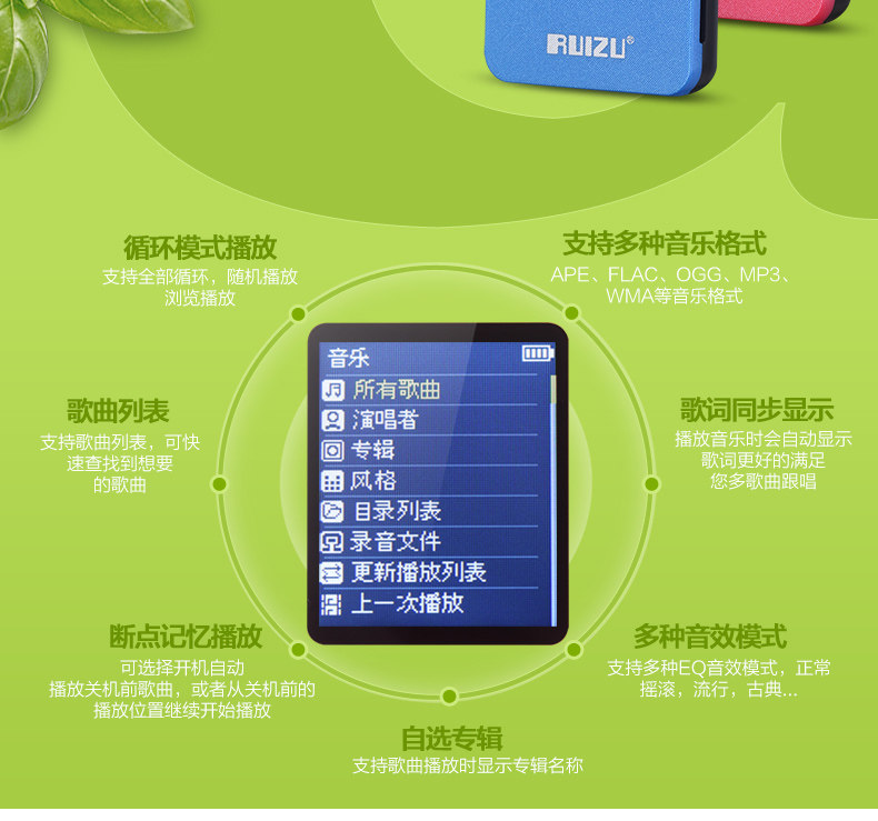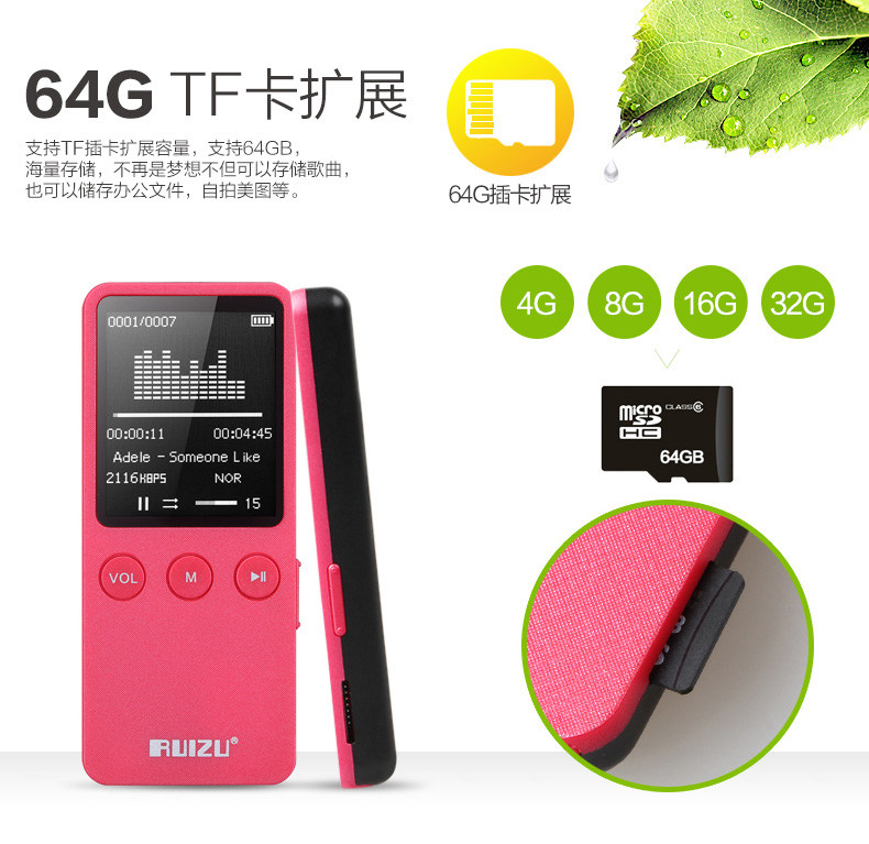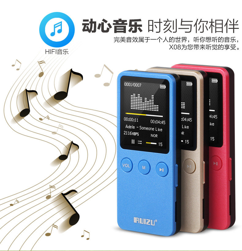 2015 New Arrive Ultrathin 4gb/8GB MP3 Player With 1.8 Inch Screen Can Play 80 hours,Original RUIZU X02 With FM,E-Book,Clock,Data