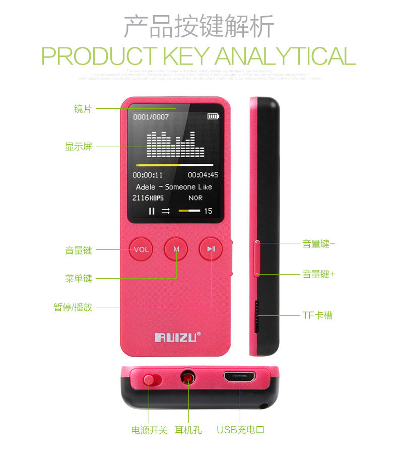 Function: E-Book,Music Play,Recording, Photo Viewer, FM Radio,Game.