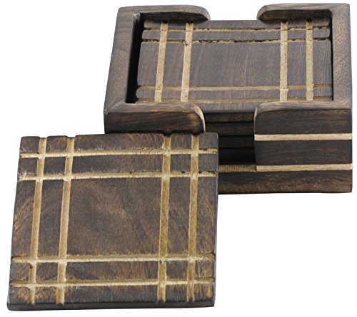 - Handmade, Beautiful Retro Look mango wood square coasters and coaster holder