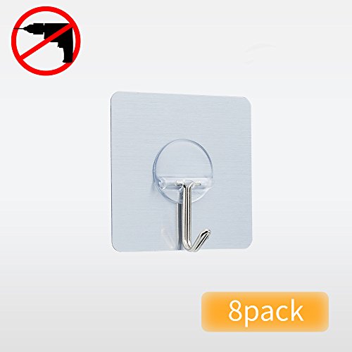 - ✔FEATURES : No Glue No Drill NO Damage. Our non-trace adhesive is very sticky, easy use only peel and stick and be reusable(see below description). Outstanding bearing capacity, heavy duty hooks,can bear more than 8KG, piece of cake to hold heavy things.Can be used for rough surface, not only has a strong long-lasting bearing capacity, but also waterproof moisture and oil proof, high and low temperature resistance, washed dry can also be reused.The transparent magic hook can rotate 90 degree