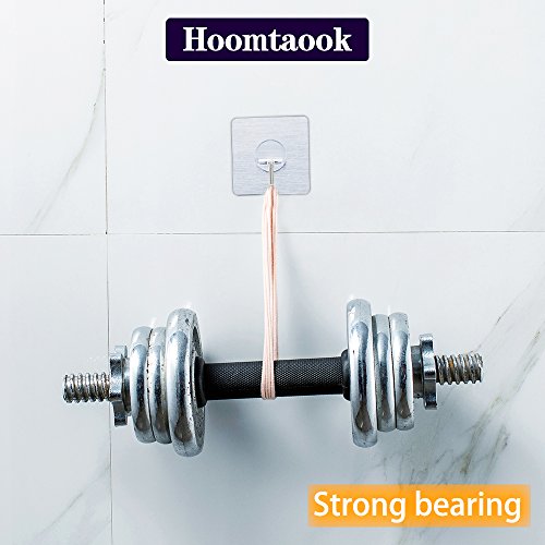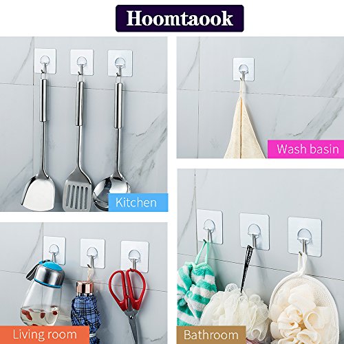 HOOMTAOOK Heavy Duty Hooks No Drill Hanger 6 Reusable Seamless Self Adhesive Hooks Waterproof and Oilproof Hanger with Stainless Hooks For Kitchen Fridge Table Wardrobe Bathroom Pack of 8