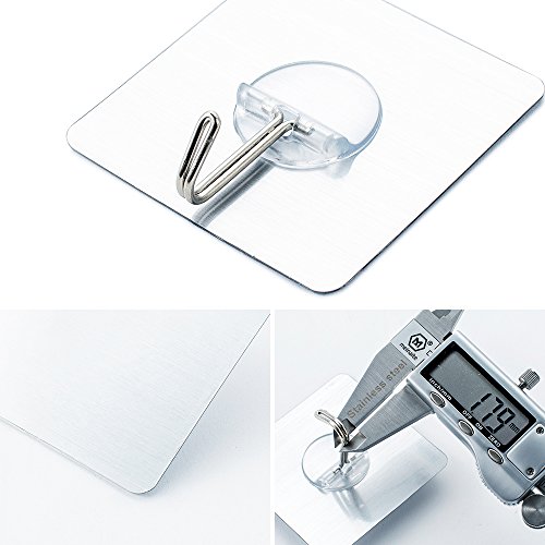 - ✔Material: This sticky hangers made of stainless steel + PVC material. The stainless hooks has good corrosion resistance,more sturdy than plastic hooks. Imitation metal Decal is simple yet elegant,fitting for any modern home.Pack of 8. Product Size: 63*63MM