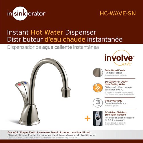 InSinkErator HC-WaveSN-SS Involve Series Wave Hot and Cold Water Dispenser System with Stainless Steel Tank, Satin Nickel